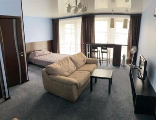 Номер студия представляет собой однокомнатный номер, где зона спальни и гостиная зона расположены вместе.